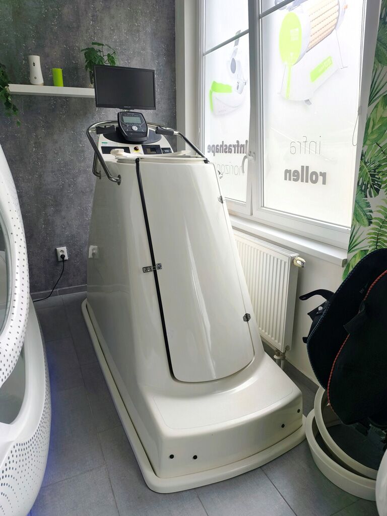 Na váš dopyt sme doplnili stroj na cvičenie VACUSHAPE bežecký pás. Podobne ako pri infrashape Horizontal/bike, cvičením v stroji skracujete potrebný vynaložený čas na cvičenie a spaľujete kalórie 3x rýchlejšie ako pri bežnom cvičení, vďaka infražiariču a vákuu, ktorý vytvára podtlak v kabíne. V stroji sa pohybujete rýchlou chôdzou, kde rýchlosť a sklon si regulujete sami.